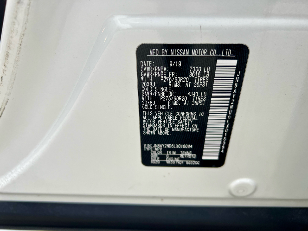 Vehicle Inquiry for 2020 Nissan Armada 2WD 4dr SL