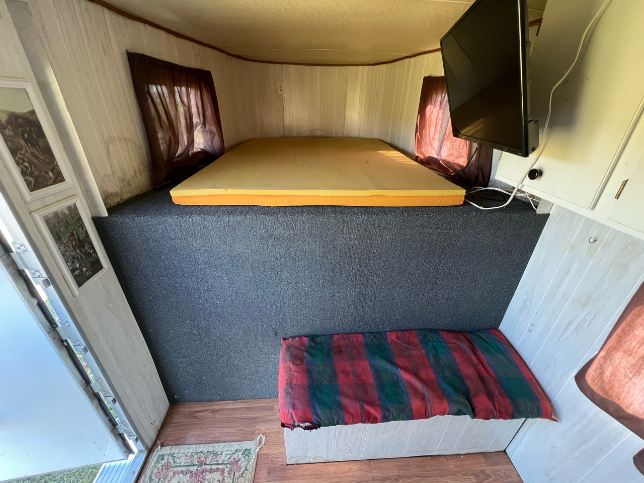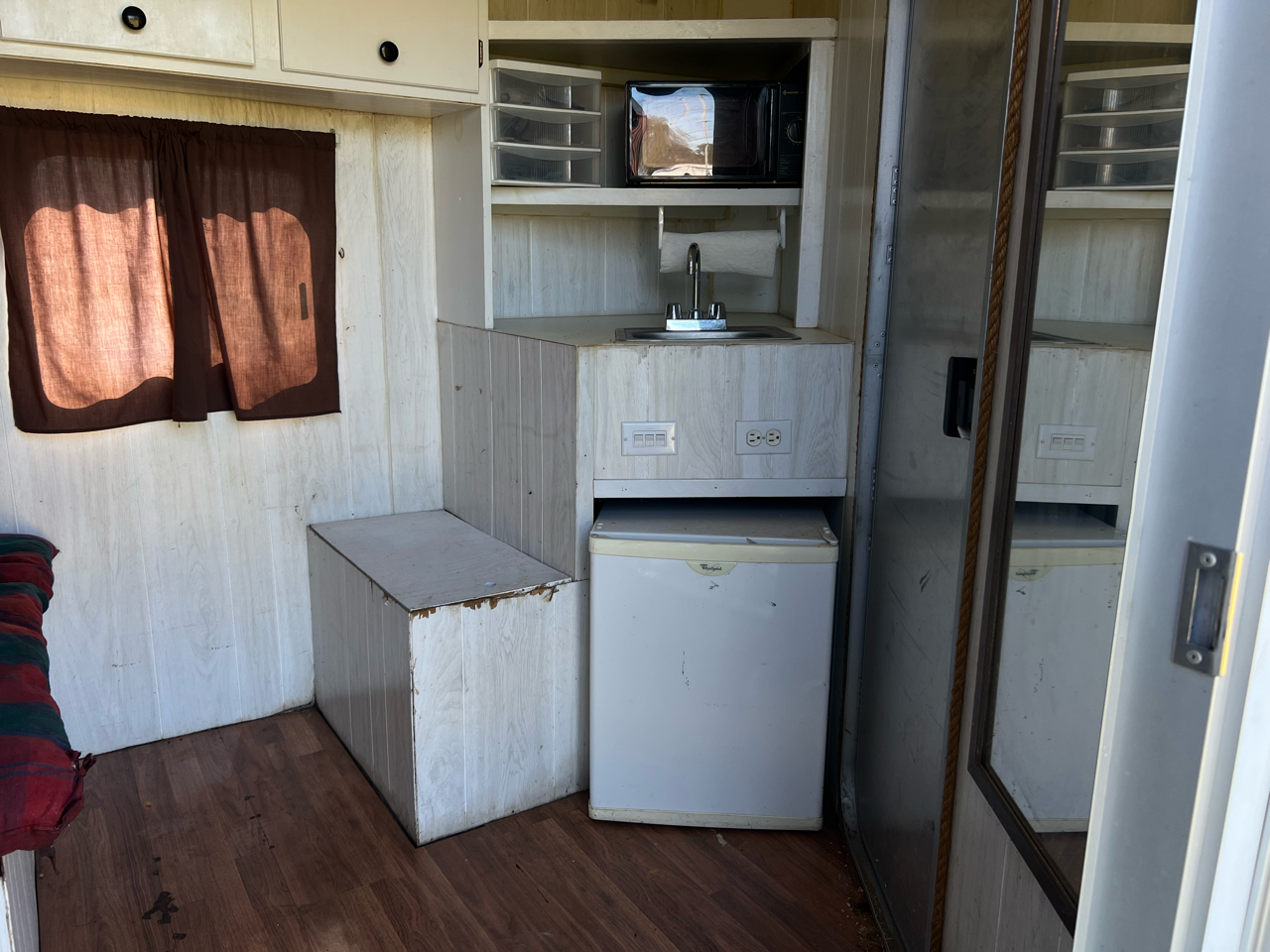 Living Quarters• Professionally finished cowboy shower, microwave, television, and refrigerator—all in full working order. • Climate-controlled comfort with ample cabinetry and clean, well-kept interiors. • Ideal for overnight events or extended travel.